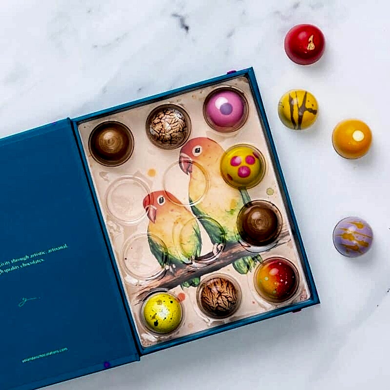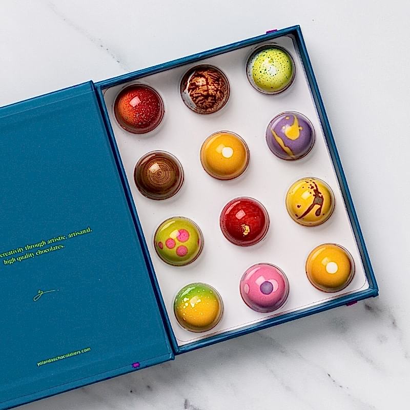 Don’t judge a book by its cover? We disagree! Our prestigious gift boxes complement our artisanal bonbons, to perfection. Each bonbon is handcrafted with delicate precision, making every bite a fresh experience. Treat yourself or someone close to you with a gift of 6, 12, 24 or 54 pieces.