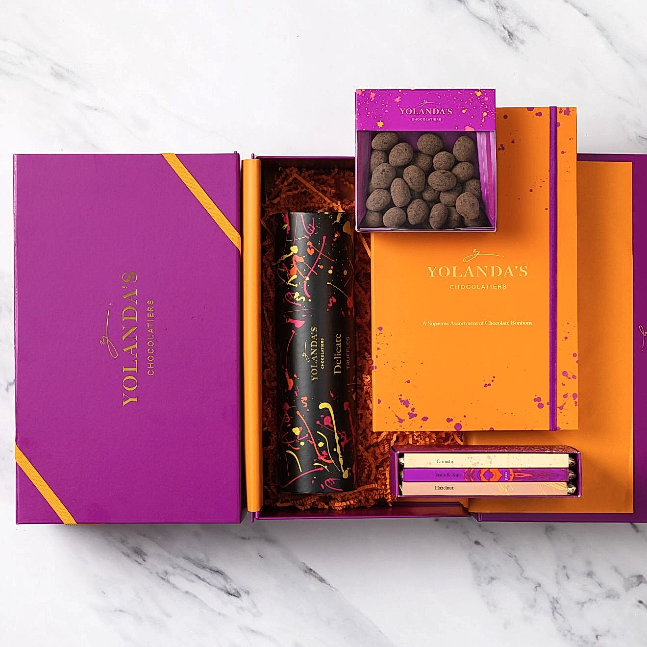 Gift someone the magic of Yolanda’s Chocolatiers, with our unique Gourmet Hamper. Bursting with a selection of our bonbons, truffles and nuts; a rich selection of delicate red wines.