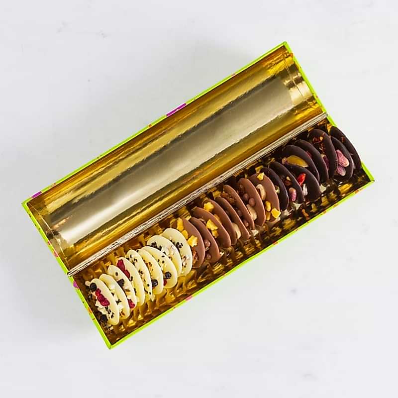 Our new mendiants box is the perfect gift to impress your friends, collegues or loved ones. Our prestigious gift box complements our artisanal mendiants, to perfection. Each mendiant is handcrafted with delicate precision, making every bite a fresh experience. Treat yourself or someone close to you with a gift of mouth watering mendiants.